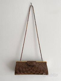 Splendida pochette anni '60 con perline color bronzo stile boho, elegante e chic. Borsetta vintage da teatro/cerimonia con profilo e chiusura in metallo dorato, rivestita di perline e tracollina. Made in Italy. Misure 29x10cm. In buone condizioni, solo qualche piccolo segno del tempo. Consegna a mano a Grado, Trieste e in provincia di Gorizia. Eventuale spedizione a vostre spese.
