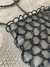 Pochette da cerimonia grigio perla con perline brillanti grigio scuro e tracollina. Interno con taschina con cerniera. Usata una sola volta per un evento, in ottime condizioni.