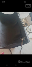 Pochette nera elegante da donna. Chiusura con un bottone caratterizzata dalla fibia piena di swarovski neri. Possibilità di portarla sia a mano sia a tracolla(di metallo colore argento). Piccola taschina all interno per le chiavi