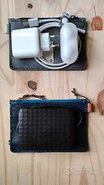 raffinata pochette da viaggio in pelle, ideale per tenere in ordine e proteggere caricabatterie, cavi, auricolari Bluetooth e persino un hard disk SSD con il relativo cavo.