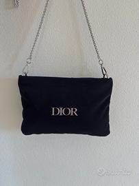 Elegante pochette Dior Beauty a cui sono stati aggiunti dei gancetti e la tracolla.
