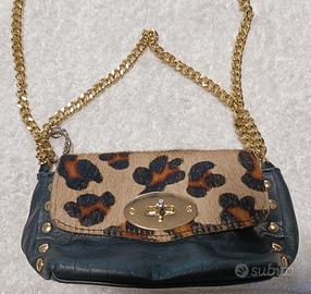 vera pelle , tracolla in metallo dorato h= 55 cm + maniglia piccola dorata h = 11 cm , un portamonete interno con 2 zip 12 x 8 cm agganciato con catenella , branda VAGG ALTA CLASSE , misure 17 x 10 x 6 cm , costo al nuovo 72 euro , usata una volta , praticamente nuovo.