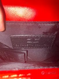 Vendo pochette Elisabetta Franchi originale color rosso con dettagli dorati. Accessorio elegante e versatile, perfetto per outfit serali o occasioni speciali. Condizioni buone. Design moderno e raffinato.