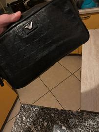 Pochette emporio armani in pelle con tasche interne, originale ovviamente