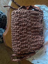 Pochette realizzata a mano, tecnica uncinetto con fettuccia mellizzata , laccetto da polso che si potrebbe utilizzare anche come portachiavi