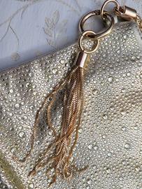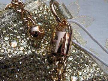 Pochette gioiello color Oro con strass nuova perfetta L27cm x H 20 cm con cartellino MAI usata