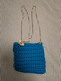 pochette in maglia con dettaglio gioiello e catena,ottima da portare sia a mano,sia a tracolla. nuova,mai usata