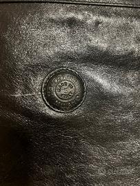 Pochette grande I Santi in pelle di citello. Colore nero. Interno con logo e tasca. Largh cm 37 altezza cm 27 profondità cm 7. Come nuova.