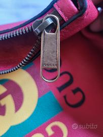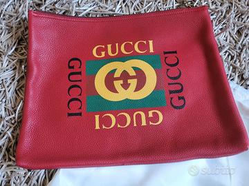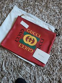 Pochette nuova unisex marca originale gucci in pelle colore rosso con stampo gucci dimensioni 31x24 cm