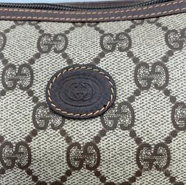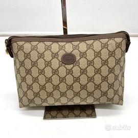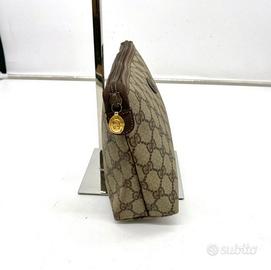 Pochette Gucci GG tela e pelle. Borsa da cosmetica vintage. Articolo 100% autentico, in buone condizioni con qualche leggero graffio.