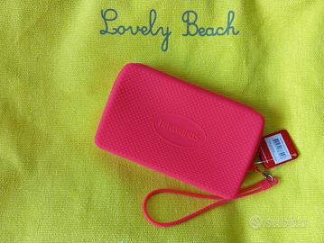Pochette Havaianas con cerniera, scritta sul davanti e cinturino da polso. In silicone, impermeabile e lavabile. Colore strawberry Misure 16,3X10 cm Nuova con il cartellino #havaianas#havaianaspochette#pochettefemme#pochettedapolso#pochettemare#pochettedonna