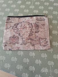 pochette per il trucco o altro con la mappa della terra di mezzo de il signore degli anelli mai usata misure in foto
