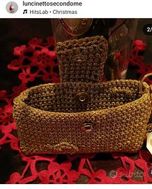 Scopri la nostra nuova pochette dorata, realizzata a mano con la tecnica dell'uncinetto in prezioso cotone lurex oro: un tocco raffinato per i tuoi outfit natalizi.