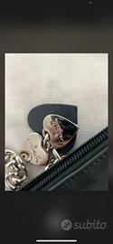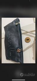 Borsa pochette in pelle originale Loristella. Minimal e versatile. Grigia con catena in metallo. Nuova usata solo una volta