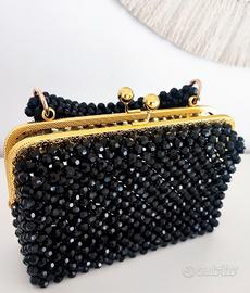 Pochette in perline nere con pratico manico in perline staccabile. Molto elegante e pratica. Apertura clic clac. Ideale per serate matrimoni o eventi.