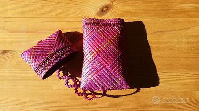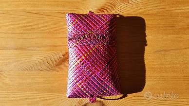 Artigianato della Malesia! Bellissima ed originale pochette in Rafia intrecciata frutto dell'artigianato Malese. Utile per contenere oggetti, cellulare o documenti. Colore: Pinky shades Dimensioni: 16,5 x 10 (Lunghezza x Larghezza)