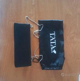 Vendo pochette di raso nera, elegante, nuovissima, con catena color argento, taschino interno e senza difetti (come in foto), indossata una sola volta ad un matrimonio e tenuta benissimo. Comprata in negozio, a Tata. Con fodero incluso. Per informazioni, contattami in chat ☺️👠👜🛍