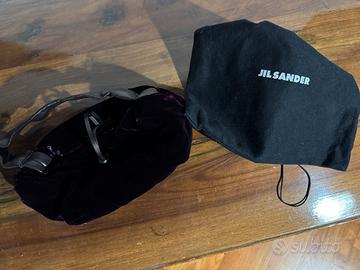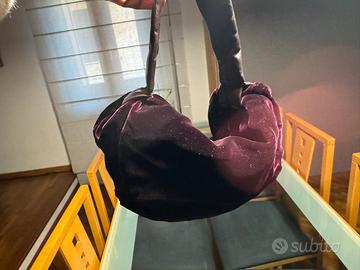 Elegante e raffinata pochette in velluto color viola intenso, dal design minimal e sofisticato tipico del brand. Perfetta per occasioni speciali o per dare un tocco ricercato ad un outfit essenziale.