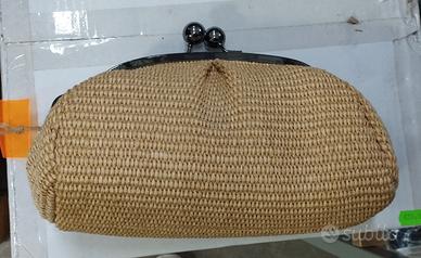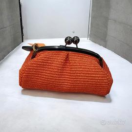 Vendo pochette in pelle vera ed esterno in rafia nuova di zecca. La borsa è completa di cartellino e la minuteria metallica è protetta da una pellicola protettiva: perfetta come regalo o per te stessa. Specifiche: Made in Italy in vera pelle (etichetta interna in pelle: Vera Pelle). Materiale esterno: Rafia intrecciata di alta qualità, molto piacevole al tatto. Chiusura: Classica chiusura a scatto in nichel scuro. Include: Tracolla in metallo removibile (può essere portata a mano o a spalla). Colori disponibili: Questo modello è disponibile in un'ampia gamma di colori. Puoi scegliere tra: Arancione acceso (come nella foto principale) Beige classico (paglia) Blu intenso (elettrico) Giallo brillante Cioccolato (marrone) Blu delicato Fucsia acceso (rosa) Questa borsa è molto leggera ed elegante, perfetta per l'estate, le vacanze o una serata fuori. Condizioni: Nuova con cartellino. Prezzo: €45
