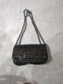 Borsetta Liu Jo, originale, pochette, con strass, molto elegante, ottima per cerimonie o eventi. E' possibile portarla a mano, tracolla o spalla Nuova, acquistata per un matrimonio e poi messa nel cassetto Decorata interamente con paillettes e caratterizzata da una tracolla a catena metallica. Il modello presenta un motivo logo all-over realizzato con paillettes. Sul davanti è applicata una targhetta metallica con il logo Liu Jo. È dotata di una catena metallica scura che permette di indossarla sia a spalla, tracolla che a mano. Nessun difetto.