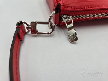 Bellissima pochette Louis Vuitton Accessoires misura MM realizzata in pelle epi rossa con hardware argentato.. Una pochette perfetta per usare per ogni occasione. si può essere utilizzata sia come borse a mano che a spalla. La borsa si trova in ottime condizione. Misure: L 23x A13 x P4 cm Made in France