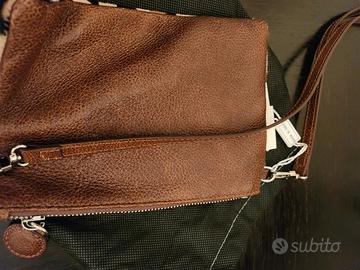 pochette in pelle marrone con lunga tracolla