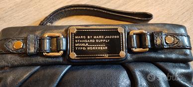 Morbida pelle, placchetta in metallo con logo, chiusura con cerniera.