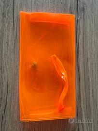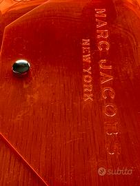 Pochette Marc Jacobs in plastica arancione trasparente. - dotata di chiusura a bottone - pochette da polso - logo Marc Jacobs stampato.