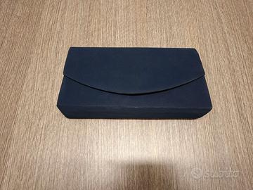 Piccola borsa rigida di Marina Galanti in tessuto blu scuro, dalla linea essenziale e compatta. Ha patta frontale con chiusura magnetica dorata, tracolla a catena metallica sottile e interno foderato tono su tono con una piccola tasca. Pensata per contenere l’indispensabile, si presta a essere usata sia a mano sia a spalla, in particolare per serate o occasioni formali.