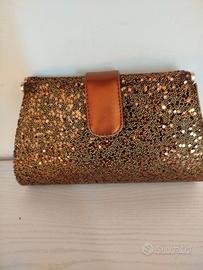 Pochette marrone dorato con piccoli strass e chiusura a patta