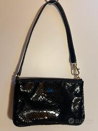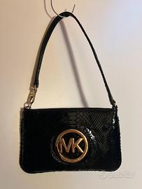 Vendo mini pochette di Michael Kors originale, in ottime condizioni e senza segni di usura. Colore nero con finitura lucida effetto pitonato. Logo in metallo dorato e chiusura con zip. Dimensioni: 18 x 12 x 2 cm