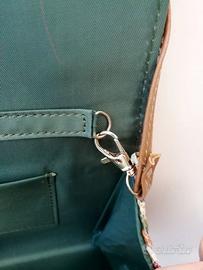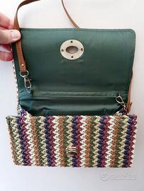 Pochette nuova senza cartellino in rafia, nei toni del verde militare e del beige, con tracollina staccabile. Ha una piccola tasca Interna. La fantasia richiama quella del celebre stilista Italiano Missoni. Spedisco entro due giorni lavorativi.