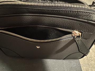 Pochette Montblanc nuova usata due volte non fa per me.bella grande con due cerniere completa di sacchetto e laccio .larghezza 25 cm profondità 7 altezza 15 circa.no scatola .