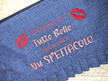 Maxi Pochette con dedica ricamata interamente handmade e foderata nel suo interno.. Questa è la versione maxi ideata x le donne più esigenti che vogliono avere tutto ciò che occorre nella propria pochette.. Può essere un idea regalo x la festa della mamma, ma anche un regalino x le maestre o x le rappresentanti di classe..