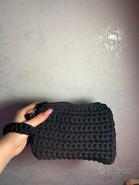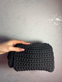 pochetta nera fatta a mano all’uncinetto con zip e gancetto disponibile
