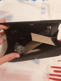 Elegante pochette nera con dettagli glitterati, mai utilizzata, ancora nella carta.