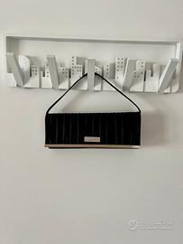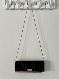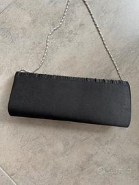 Pochette nera in raso con banda metallo e strass chiusura con bottone magnetico