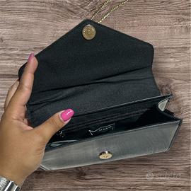 Dotata di tracolla a catena argentata removibile: può essere indossata a spalla o portata a mano.