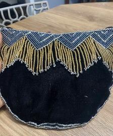 Materiale: Velluto nero decorato con perline di vetro nere e dorate.