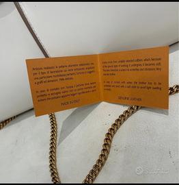 doppia tracolla (corta in pelle, lunga oro) misure 27*15*5, in pelle lucida NO VERNICE col panna, indossata poche volte