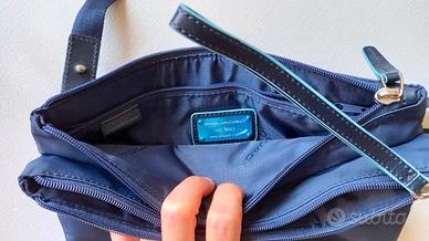Pochette Celion Piquadro in tessuto con dettagli in pelle. Accessorio versatile con chiusura con zip e tracollina regolabile removibile.