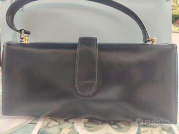 Pochette da sera in pelle nera con chiusura metallica dorata, alta 13cm, larga 30cm