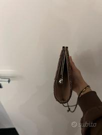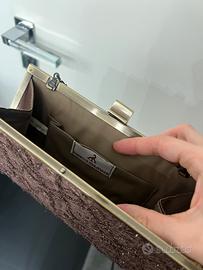 Pochette con tracolla in pizzo marrone con riflessi bronzo