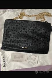 Vendo Pochette originale Pollini Linea Tapiro . Come potete vedere dalle foto si tratta di una Pochette originale con certificato e sacca . La borsa nella parte anteriore presenta piccoli segni di usura. Internamente è praticamente perfetta , stessa cosa per la catena dorata . Come invece mostra l’ultima foto presenta
