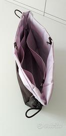 in tessuto impermeabile bicolore, viola chiaro e viola scuro.