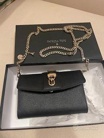 pochette - portafoglio - patrizia pepe - pelle nera e acciaio dorato - nuovo