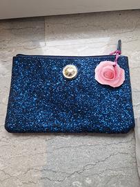 Pochette porta trucco blu glitterata, brand Camomilla, con zip. Nuova mai usata. Materiale similpelle, foderata in tessuto. Disponile anche per scambio a mano su Torino.
