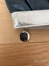Pochette Pupa, di raso grigio con banda argentata, cerniera e logo