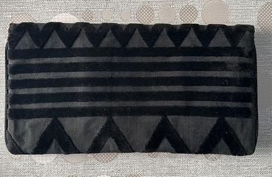 Bellissima pochette Roberta di Camerino vintage, in tela e velluto nero, interno in pelle.