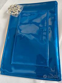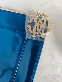 Vendo pochette Roberto Cavalli mai usata di misura 26x17. Di colore azzurro metallizzato ha ancora la pellicola sul logo dorato.